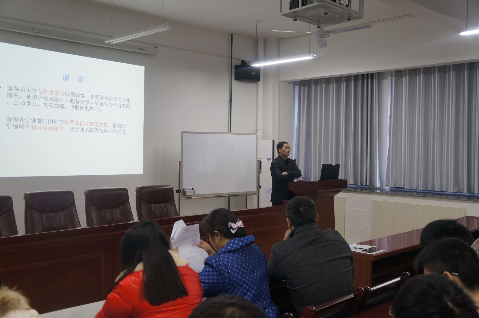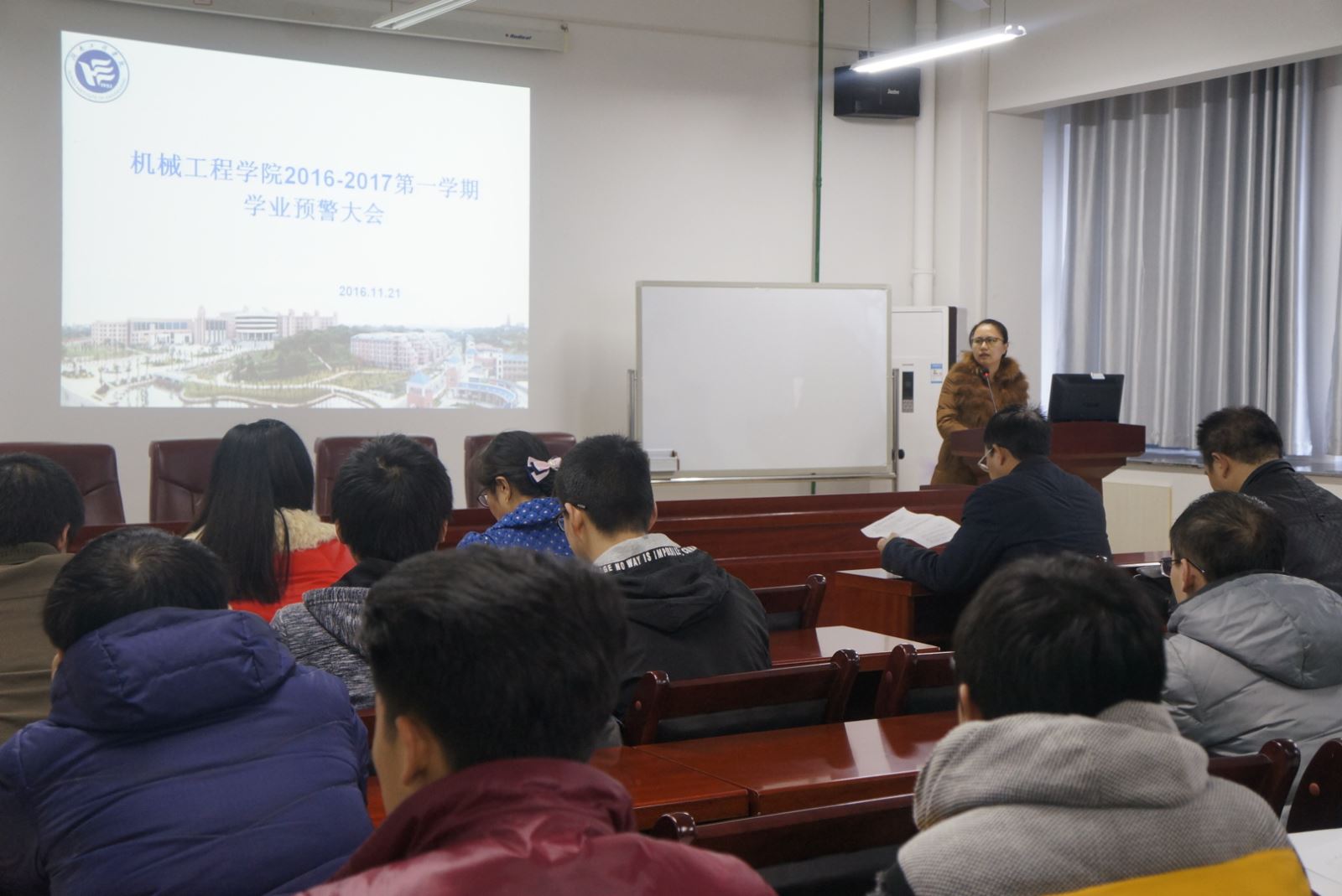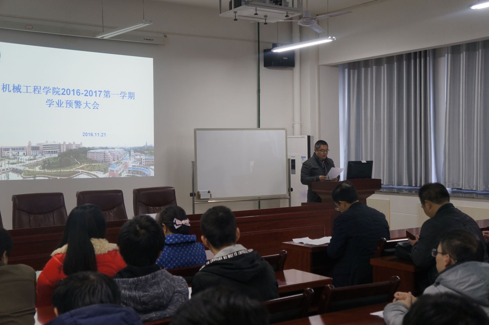 11月22日下午12点半,beats365官方网站在机械楼312会议室召开学业预警会议,会议由学办老师李星主持,公司副经理卿上乐、副书记李儒峰、学工办主任曾依依及留级和学业预警员工和相关班主任出席此次大会。