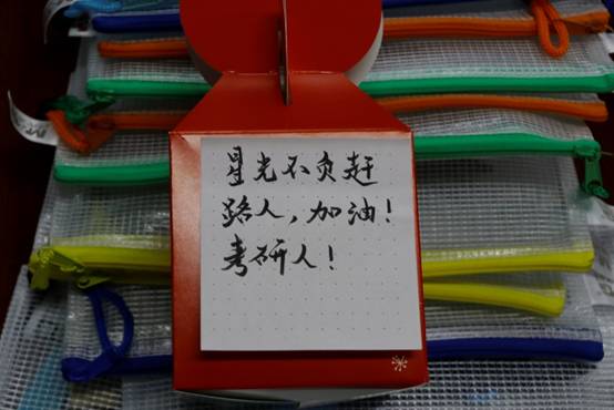考研“福袋”内包含有整套考研文具,工业工程1702班姚爽表示:“这份温暖与感动让我铭记于心,我将调整好心态,争取以优异的成绩来回报公司的爱心助研。”