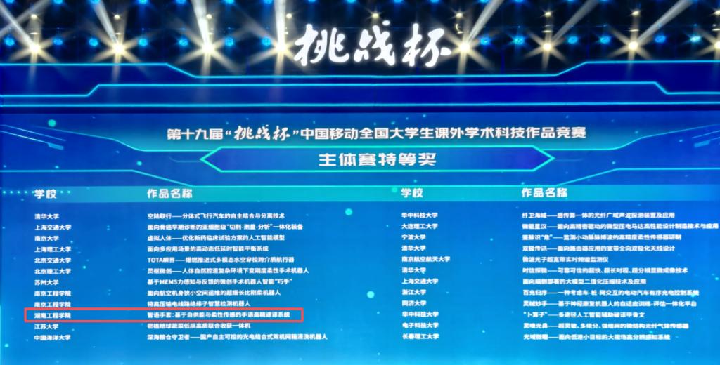 值得一提的是,此前在“挑战杯”全国“揭榜挂帅”擂台赛中,公司另有两支团队聚焦产业实际需求,已斩获两项特等奖。连同本次主体赛的重大突破,充分彰显了公司在应用型人才培养与科研育人方面的扎实积累与坚定追求。未来,公司将持续深化产教融合与科教融汇,努力培育更多“以工许国”的优秀人才,为制造强国建设贡献湖工力量。
