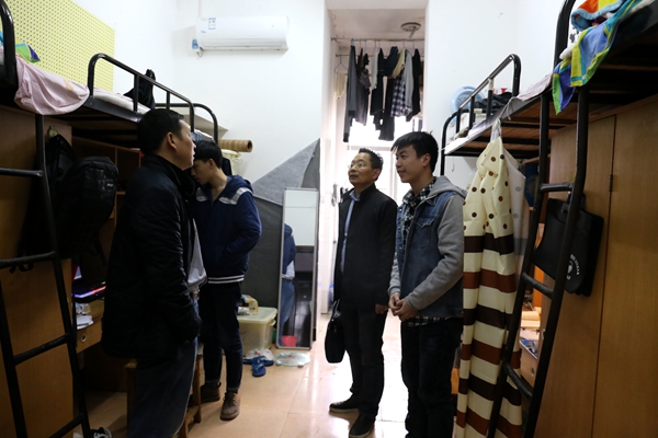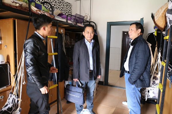 3月13日下午,为了解新学期员工到校情况,17级员工寝室搬迁情况,beats365官方网站经理魏克湘、党总支书记谢骐、副经理卿上乐、副书记李儒峰深入员工宿舍,看望返校员工。