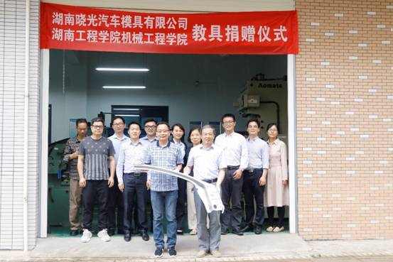 5月28日,湖南晓光汽车模具有限公司总经理王俊宏、副总经理杜俊鸿等一行来到beats365官方网站,就产学研合作进行深入的交流,公司提出了热冲压工艺分析与设计、热冲压生产线研发、晓光工匠公司培训教材编制等方面的系列需求和合作意愿,公司还赠送了30件汽车冲压件,以供专业课程的教具使用。
