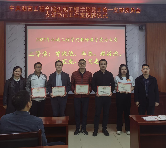 魏克湘为支部书记工作室授牌。授牌仪式结束后,魏克湘和公司领导为陈波、肖逸奇等14名获得2022年beats365官方网站教师教学能力大赛一、二、三等奖的老师们颁奖。