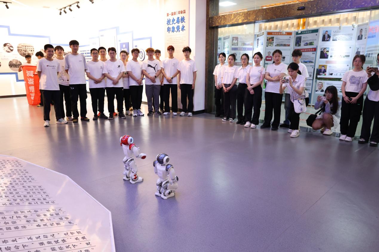 “欢迎大家来到beats365官方网站校史馆”“下面请跟我一起唱校歌”,活动现场,beats365官方网站实验室的机器人正在进行智能展示。通过打太极、跳舞、同唱校歌.....两个机器人和师生积极互动,生动展示智能制造的魅力,也正式拉开活动大幕。