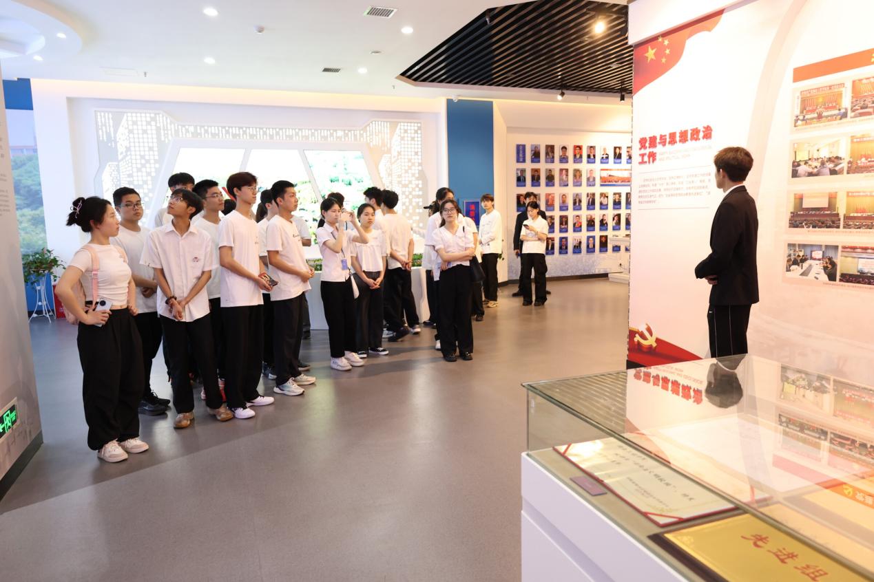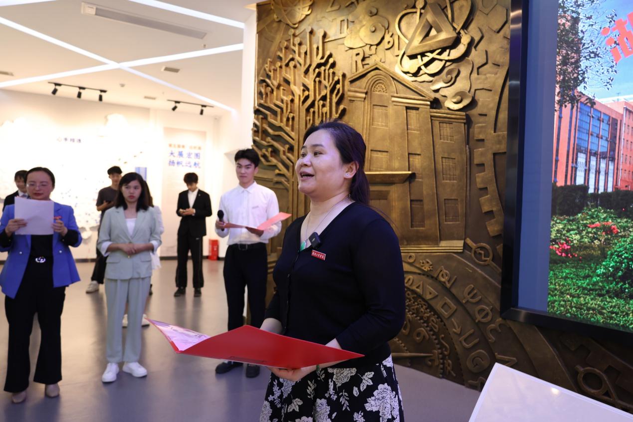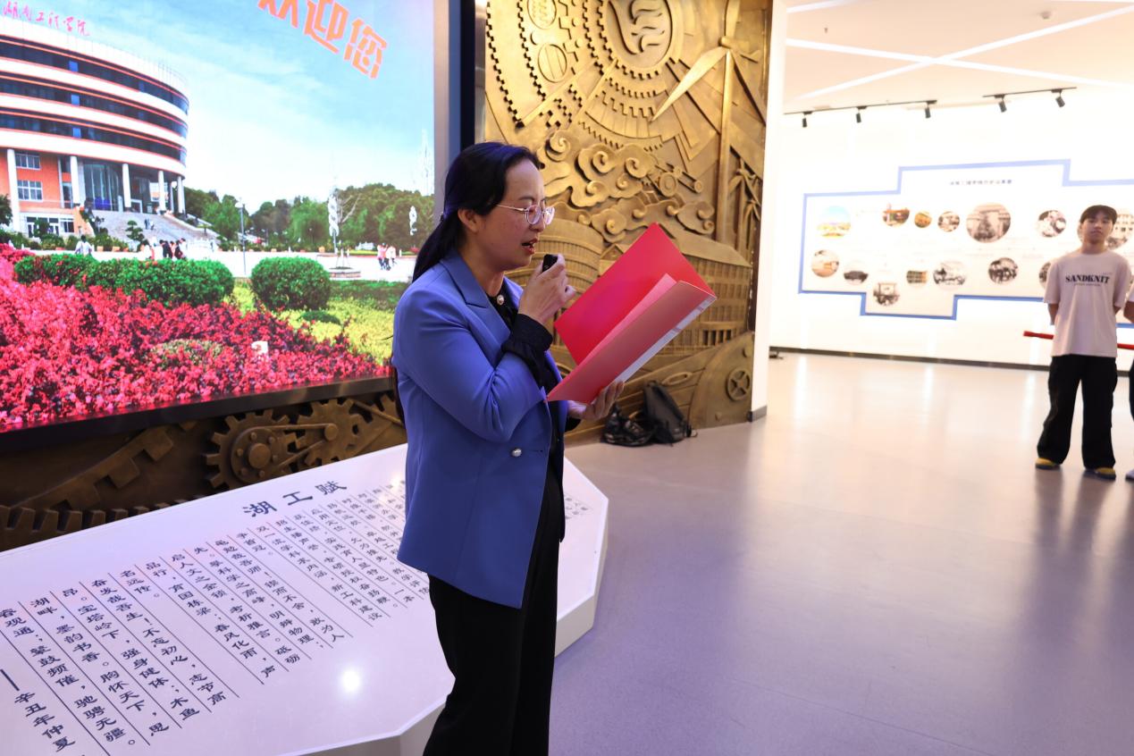 公司党委书记覃波讲话。她表示校史馆是公司历史的见证者和传承者,承载着丰富的历史信息和文化底蕴,希望同学们经常走进校史馆,了解公司发展历程和办学成果,增强对公司的认同感和自豪感,从而激发工程报校、报国情怀。随后,公司图书馆(档案馆)副馆长谭玲玲介绍了本次活动的目的和意义。她表示校史馆、文化长廊是公司的重要育人资源,是做好“135工程”扬校风主题活动的重要场所,应该创新形式发挥场馆育人功能,不断加强校园文化建设。校史陈列馆作为湖南省社会科学科普基地在“以史育人、以文化人”中发挥了重要作用。