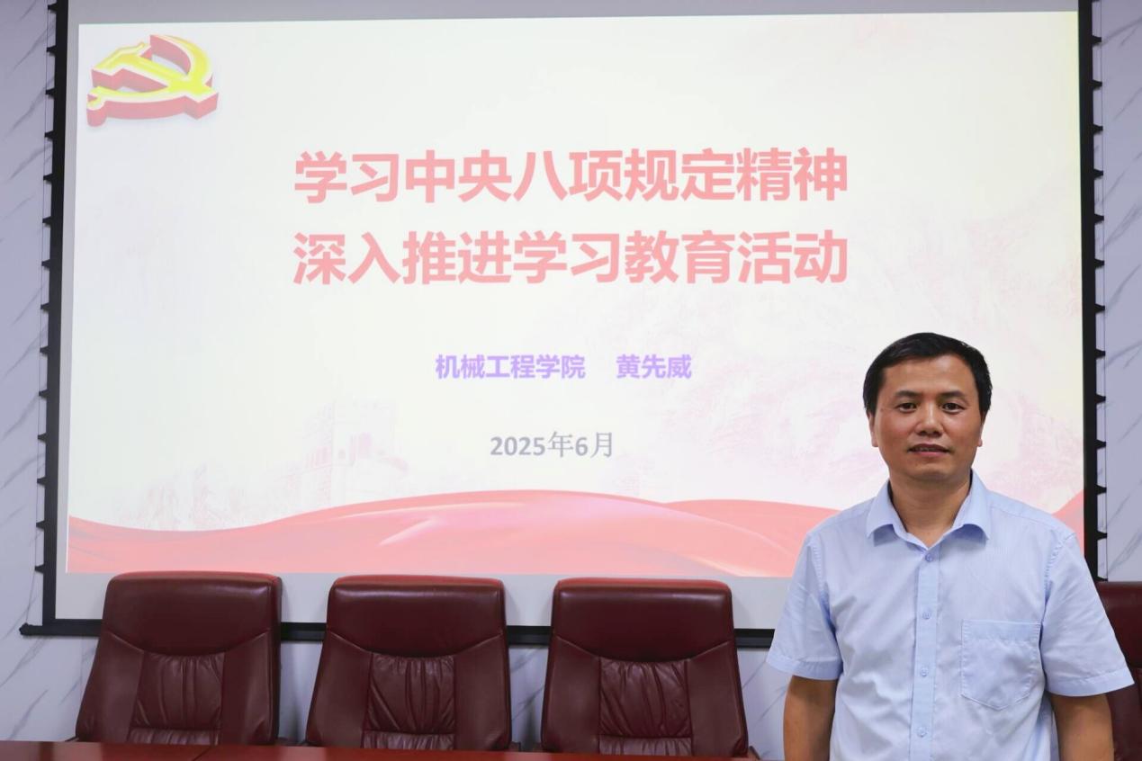 为深入学习贯彻中央八项规定精神,扎实推进作风建设,6月24日下午,公司党委书记黄先威在机械楼312会议室为全院教职工党员讲授专题党课。