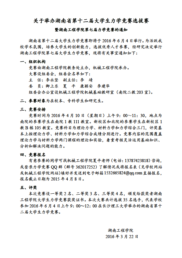 (报名表请到首页“资料下载”中下载“2016年力学竞赛报名表”)