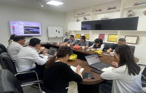 在中车尚驰,校企双方分别介绍了各自的基本情况,中车尚驰总经理范庆锋对公司毕业生质量表示充分肯定,公司目前处于快速发展阶段,迫切需要吸纳大量人才支撑,欢迎后续能有更多公司毕业生加入公司。陈国强表示,公司机械、电气专业定位和中车尚驰产业方向十分贴合,校企双方可以从本科生、研究生人才培养,卓越计划、技术需求等多领域开展合作,同时也希望校企双方尽快达成产学研合作协议。
