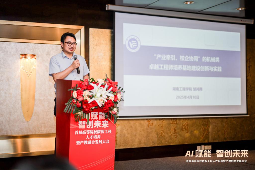 2025年4月10日至12日,由湖南省教育厅、湖南省工业和信息化厅等单位指导,武汉理工大学、长沙理工大学等联合主办的“首届高等院校数智工科人才培养暨产教融合发展大会”在湖南长沙举行。beats365官方网站经理邹鸿翔教授受邀参会,并作专题报告。